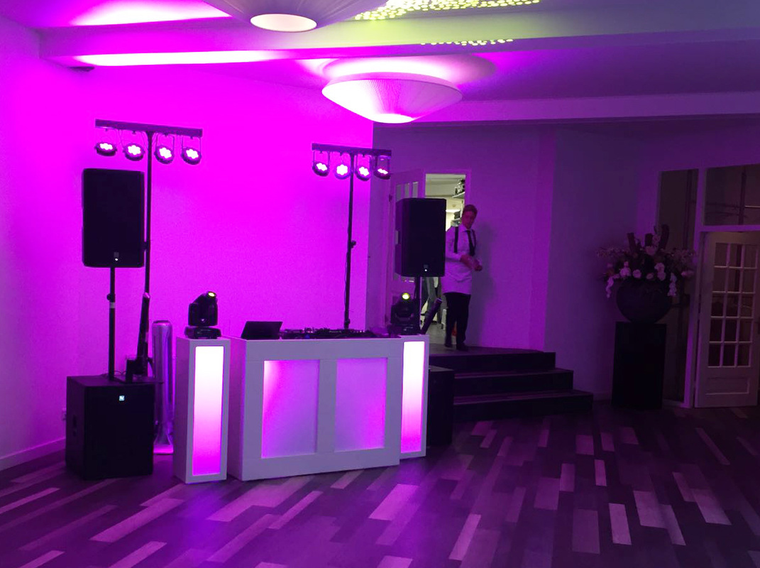 Deze set is iets “fancier” dan de compacte set. Zo nemen we een LED verlichte DJ-booth mee die van kleur kan veranderen. Daarnaast nemen we een extra subwoofer mee voor beter geluid en meer lichteffecten. Dit is wat u kunt verwachten bij deze set: